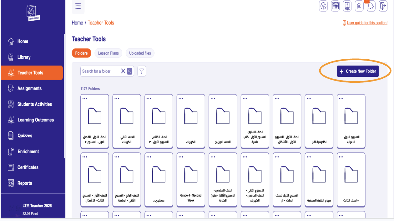 An educational portfolio can be created by clicking on the Teacher Tools icon and then selecting Create New Folder.