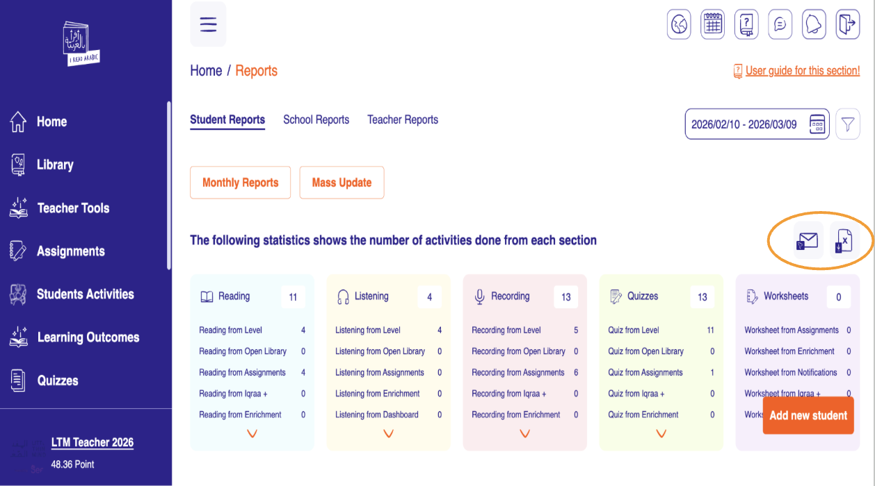- The teacher will also be able to view the tasks completed by the students, to evaluate student performance and identify areas that need development and improvement.